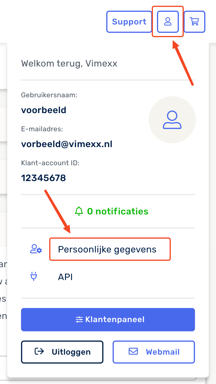 Je logt in onder jouw eigen account en gaat naar ' Persoonlijke gegevens ':