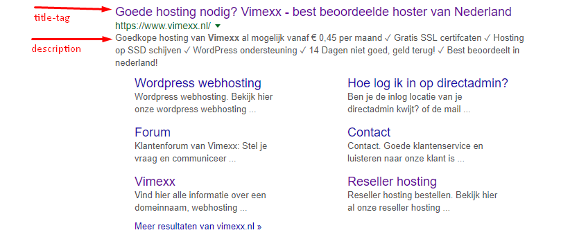 Ook de title tag, bepaald de titel van je website en de manier waarop mensen hem zien in de zoekmachine.