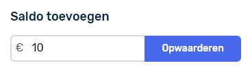 Als je je wallet wilt opwaarderen kun je een bedrag invoeren en op opwaarderen klikken.