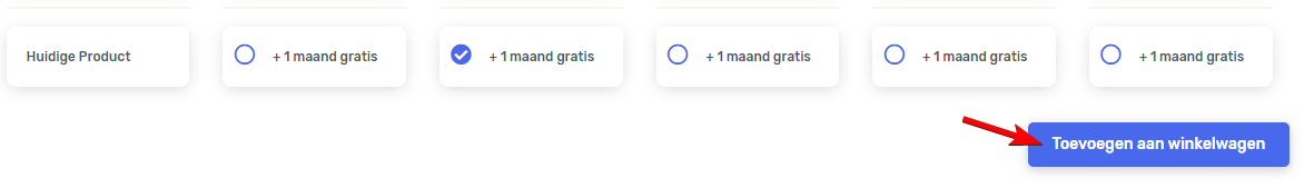 Je komt nu op de website uit, waar je het gewenste hostingpakket kunt uitkiezen. Plaats een vinkje onder het gewenste pakket en klik op de blauwe knop Toevoegen aan winkelwagen.