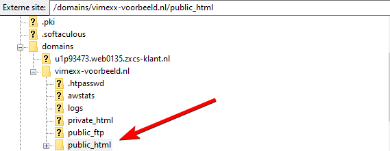 Ervan uitgaande dat je nu ingelogd bent op de FTP server, gaan we naar de map /domains/JOUWDOMEINNAAM/public_html.