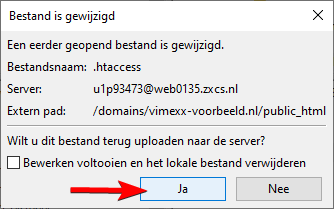 Klik op Yes of Ja, je .htaccess bestand is nu opgeslagen op de webserver. Zodra iemand vanaf het desbetreffende IP-adres jouw website probeert te bezoeken, krijgt diegene een (403) Forbidden melding.