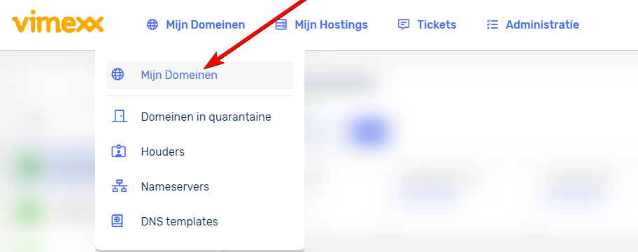 Ga naar het dashboard en klik bovenaan op **Mijn Domeinen** .