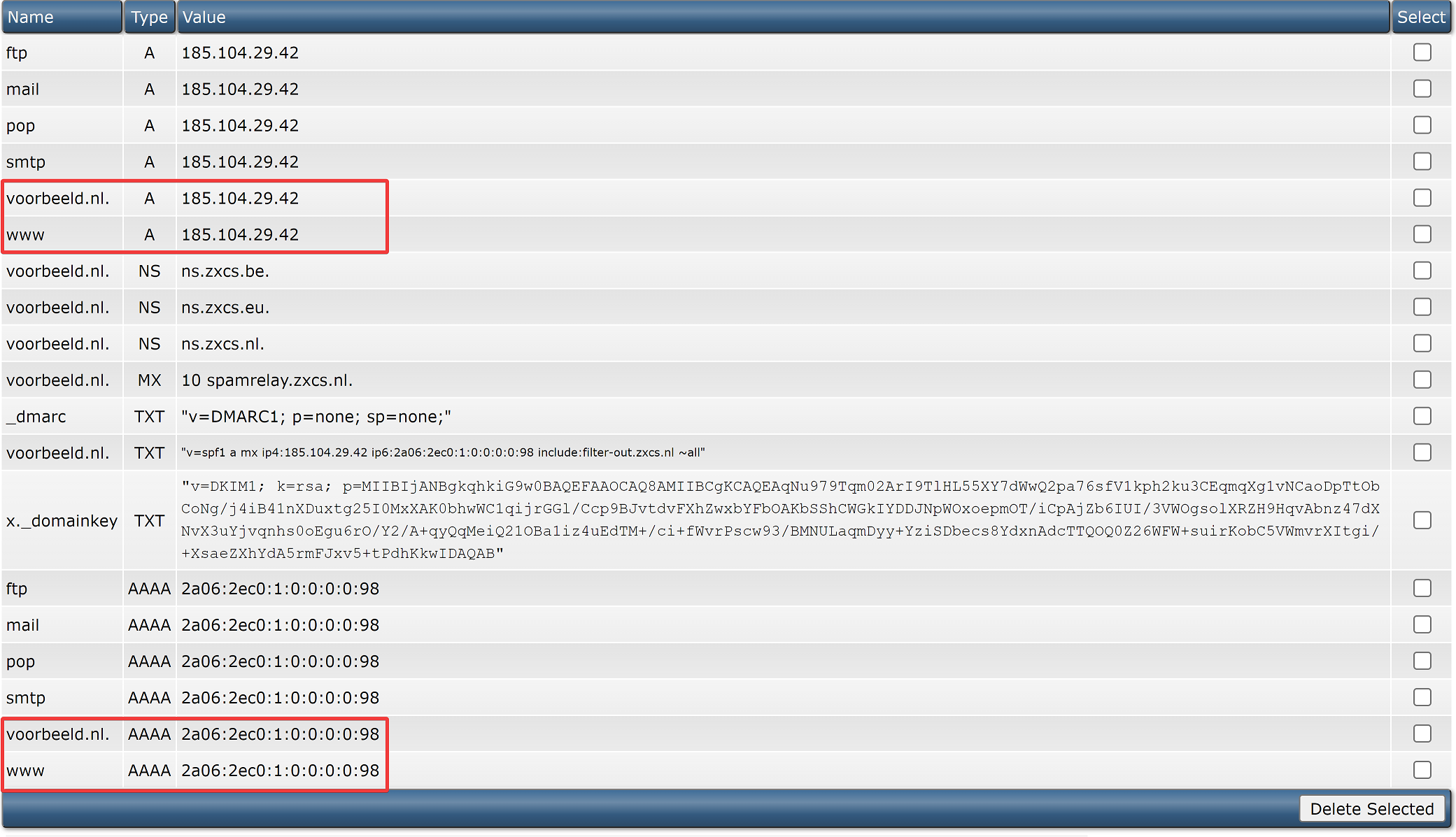 Neem niet de records over uit de afbeelding, dit is slechts een voorbeeld. Deze gegevens kunnen variëren!