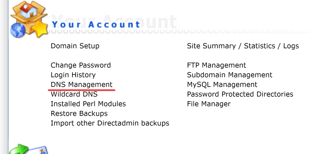 In directadmin ga je naar DNS management, daar kun je de dns aanpassen voor je domein en dus de WIX records toevoegen.