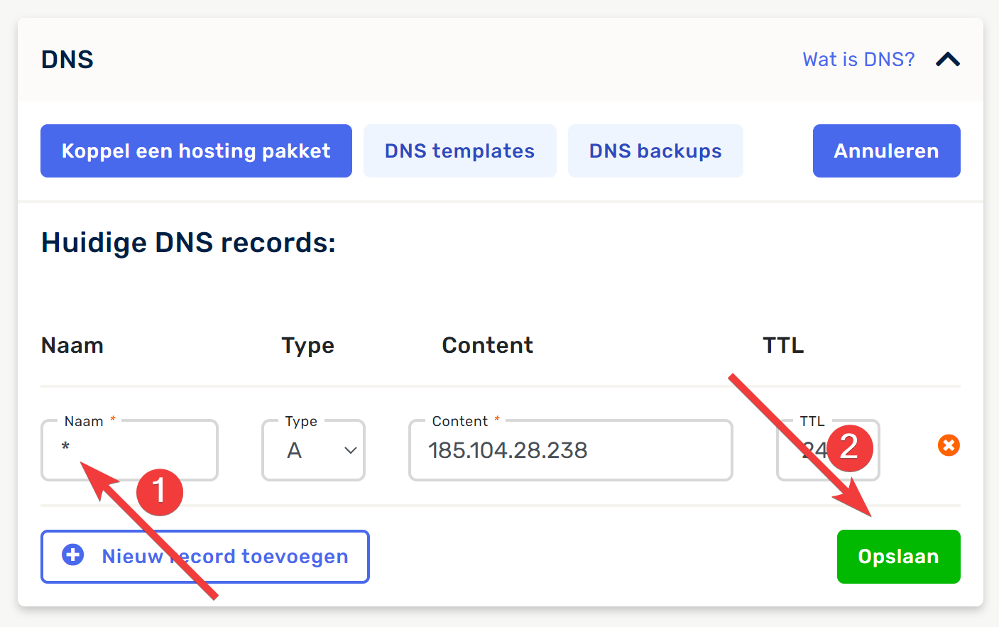 Gefeliciteerd! Je hebt nu succesvol wildcard DNS ingesteld voor je domein.