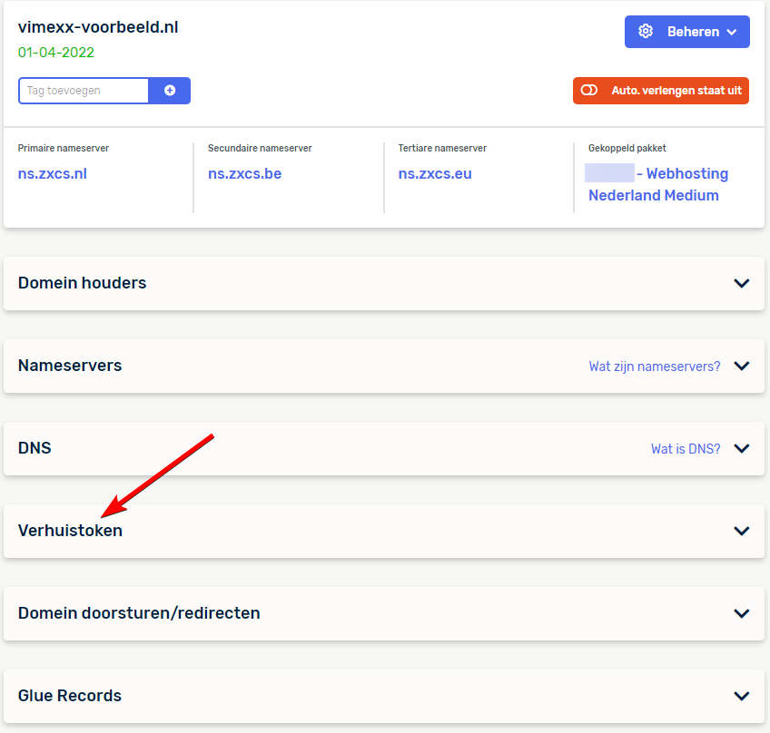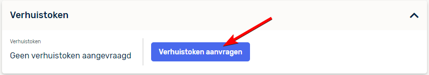 Als je op Verhuistoken hebt geklikt, dan schuift het vakje open. In het veld dat tevoorschijn is gekomen, klik je op de blauwe knop Verhuistoken aanvragen.