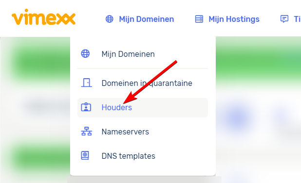 Ga in het menu van het klantenpaneel naar Mijn Domeinen naar **Houders** .