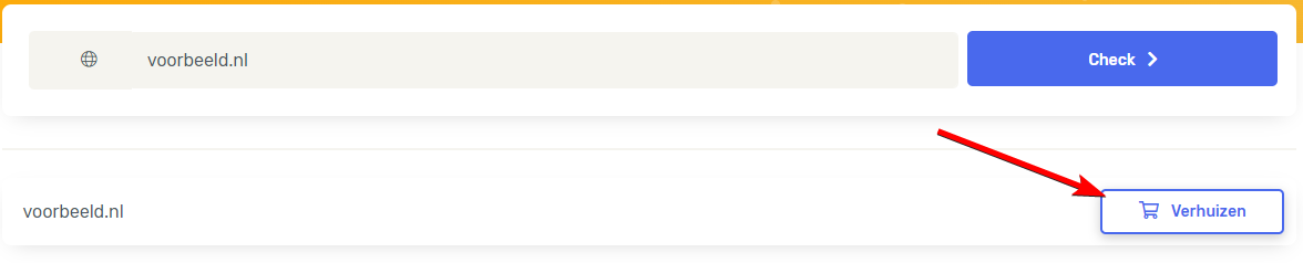 Met de knop Verhuizen, plaats je de domeinverhuizing in je winkelwagen.