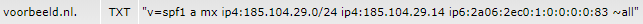 Tot slot is ook nog je SPF record vereist, omdat deze aangeeft dat onze mailserver geaccepteerd wordt als afzender.