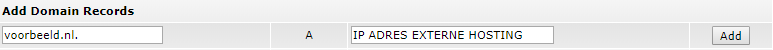Hoe je precies je domein aan je externe hosting koppelt, verschilt aan waar je de website host. Meestal zal dit middels A records zijn. Voer de vereiste records in en druk op Add om deze toe te voegen.