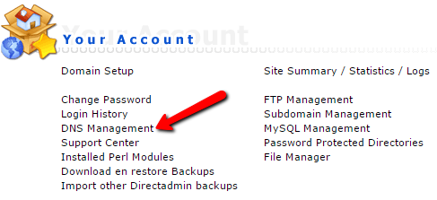 Klik vervolgens onder “Your Account” op “DNS Management”.