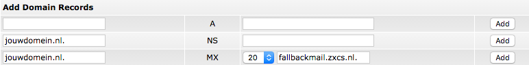 Klik nu op “Add” om de fallback server toe te voegen aan je DNS records.