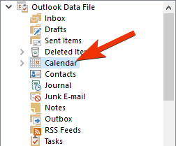 Klik eerst op de knop naast het “Outlook folder” veld, met: … Selecteer hier als folder Calendar en druk op OK.