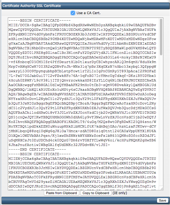 - Eenmaal op de SSL pagina, klik je onderaan op Click Here naast Click here to paste a CA Root Certificate. We gaan nu naar de pagina toe waar we de CA(root en intermediate certificaten kunnen plakken.