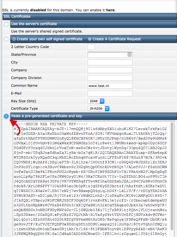Stap 1: Plaats de inhoud van het .crt bestand onder de private key.