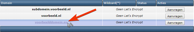 Klik binnen de SSL module op de gewenste domeinnaam, om de aanvraag te configureren.