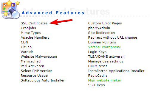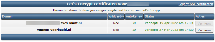 Je krijgt dan een overzicht te zien van de SSL certificaten.