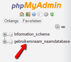 Je komt daarna op de beginpagina van PhpMyAdmin terecht, klik op de betreffende database.