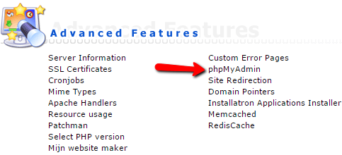 Als het goed is ben je nu al ingelogd in DirectAdmin. Ga naar het overzicht en scroll een stukje naar onderen totdat je uitkomt bij “Advanced Features”.