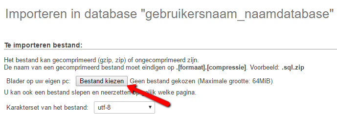 Het kan voorkomen dat het importeren niet goed gaat of niet kan vanwege een te grote import. In dat geval kun je eenvoudig gebruik maken van het artikel Database importeren via BigDump