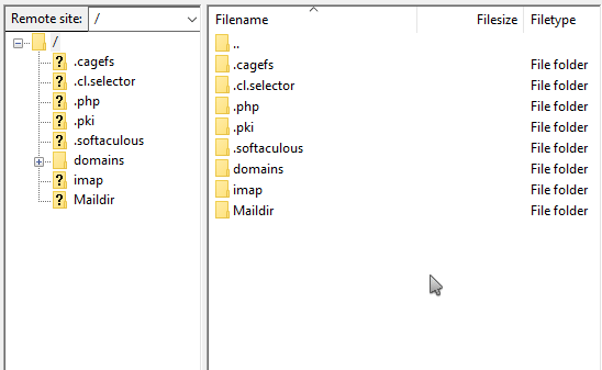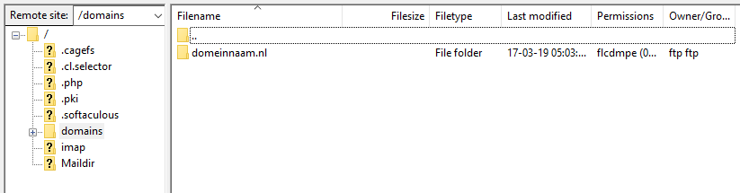Nu we verbonden zijn, gaan we onze eigen website uploaden. In dit voorbeeld ga ik de website uploaden op het gratis subdomein wat altijd inbegrepen is bij ieder webhosting pakket.