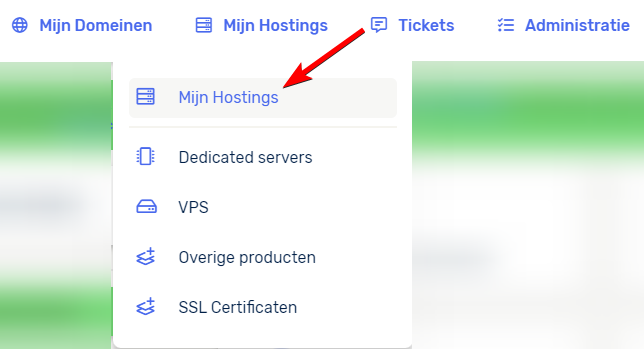 Vervolgens navigeer je naar je hosting pakketten, dit doe je door boven in het klantenpaneel op Mijn Hostings te klikken.