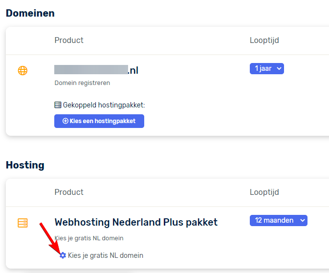 Bij aanschaf van een nieuw Plus pakket of groter kan je gratis een .NL domein registreren! Bij het bestellen van het pakket, kun je in de winkelwagen het domein toevoegen en direct gratis registreren. Mocht je dit vergeten zijn of niet opgemerkt hebben, dan kan dit uiteraard alsnog! Via deze stappen leggen we je uit hoe je dit alsnog regelt: