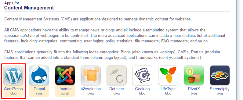 Je krijgt nu alle beschikbare applicaties te zien, klik op de applicatie die je wenst te clonen (in het voorbeeld gebruiken we WordPress).