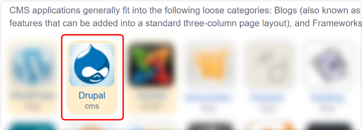 Je krijgt nu een overzicht van alle beschikbare applicaties te zien, klik in dit overzicht op “Drupal”.