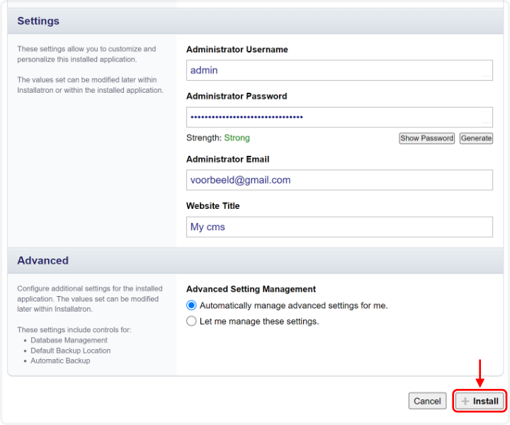 Hoe installeer ik Drupal via installatron?