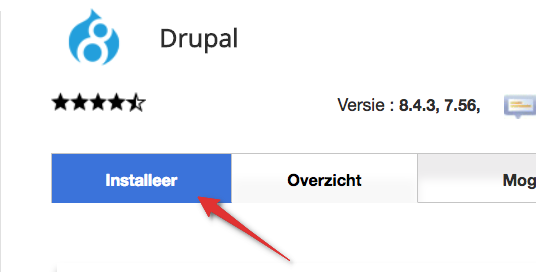 Je krijgt nu de mogelijkheid om Drupal te installeren. Klik hiervoor op “Installeer”.