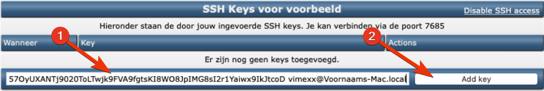 Let op! SSH moet ingeschakeld zijn om hiermee te kunnen werken. Als je het nog niet ingeschakeld hebt, druk dan op Enable SSH access.