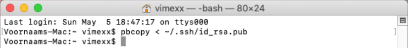 Om je SSH sleutel aan te maken ga je naar de Terminal (⌘ + T) Hier typ je het commando:
