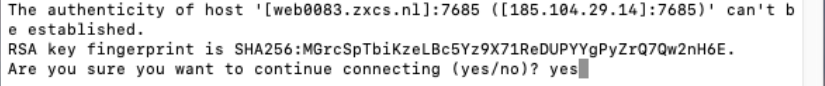 Als je voor het eerst verbinding maakt met SSH, zal je eerst de server moeten goedkeuren.