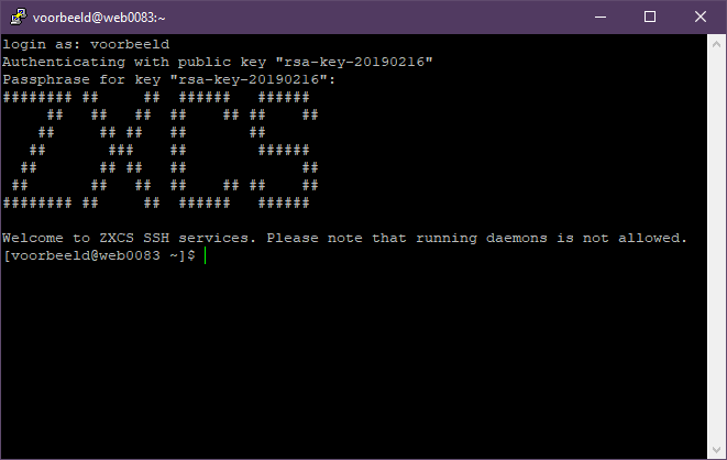Als alles goed gegaan is, ben je nu verbonden met SSH, middels een SSH key!