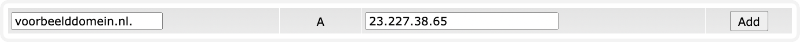 Hoewel er 4 records verwijderd zijn, hoeven hier slecht 2 records voor terug te komen. Allereerst voegen we het A record toe. De in te vullen waarden zijn: