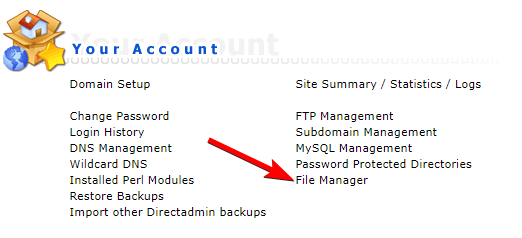 Als je bent ingelogd op het DirectAdmin paneel, klik je op File Manager.