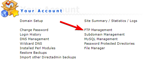 Zodra je ingelogd bent in DirectAdmin ga je naar FTP Management.