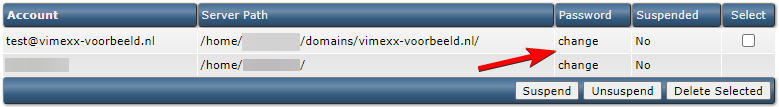 In het overzicht van de FTP gebruikers zie je een kolom Password, daar klik je bij de gewenste gebruiker op Change om het wachtwoord aan te passen.