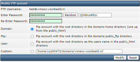 Je krijgt nu de mogelijkheid om een nieuwe wachtwoord te kiezen of te laten genereren. Zodra je dat ingevuld hebt kun je op de knop Modify klikken om het op te slaan.