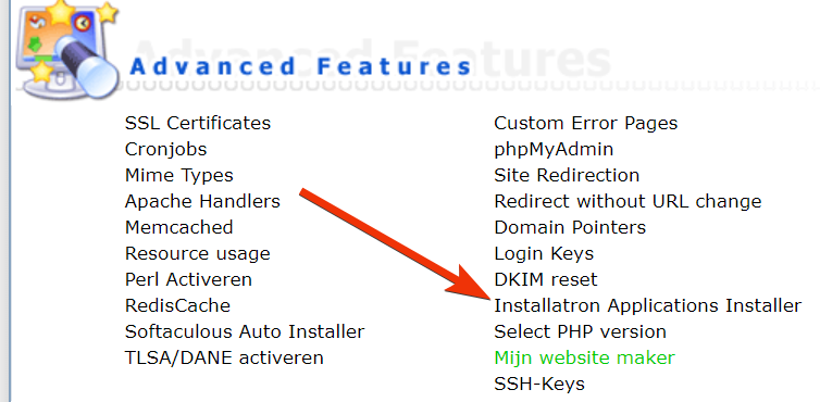 Onder advanced features vind je de optie “Installatron Application Installer”. Klik hier op.