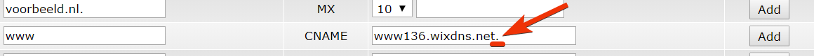 Let op de afsluitende punt! Zonder deze punt voegt DirectAdmin automatisch je domeinnaam aan de record toe.