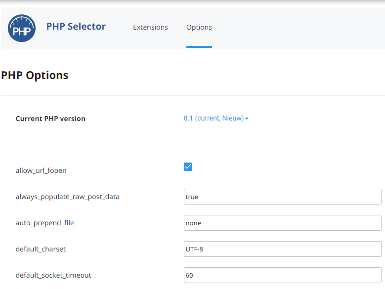 Wil je de PHP instellingen beheren per domein in plaats van je gehele hostingpakket? Dan kun je het artikel Hoe stel ik de PHP versie per domeinnaam in? volgen!
