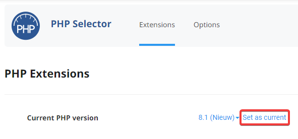 Om de opties binnen PHP te wijzigen klikken we op: Options.