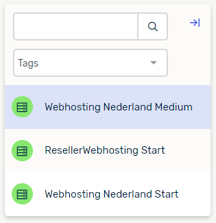 Aan de linkerkant krijg je een overzicht van alle hostingpakketten te zien. Selecteer het hostingpakket waarvan je het wachtwoord wilt resetten.