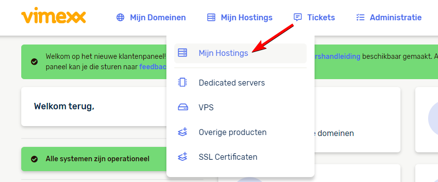 Stap 2: Navigeer naar Mijn Hostings