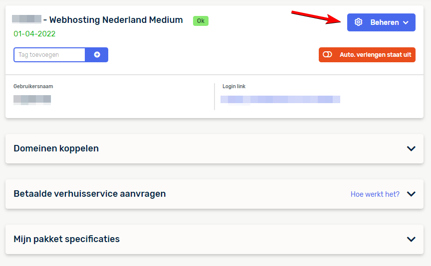 Klik vervolgens aan de rechterkant van het scherm op de blauwe knop “Beheren”.