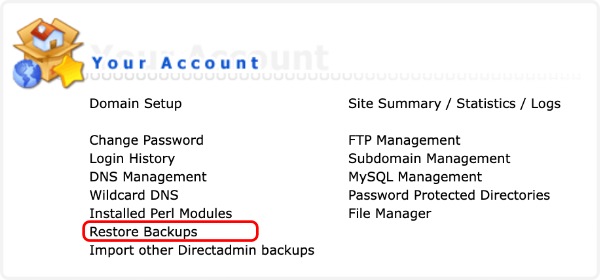 Klik onder “Your Account” op “Restore Backups”.