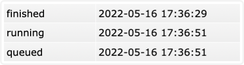 Onder mogelijke backups zie je een lijst met taken. Hier zie je wat er momenteel draait, draaiende is en wat afgerond is. Running betekent dat het herstel wordt uitgevoerd, queued“ geeft aan dat het herstel in de wachtrij staat en Finished is een voltooide backup herstel.